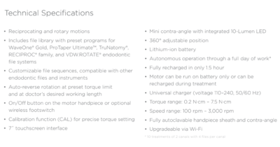 - Preset Instrument Library: Includes presets for WaveOne® Gold, ProTaper Ultimate™, and TruNatomy® solutions.